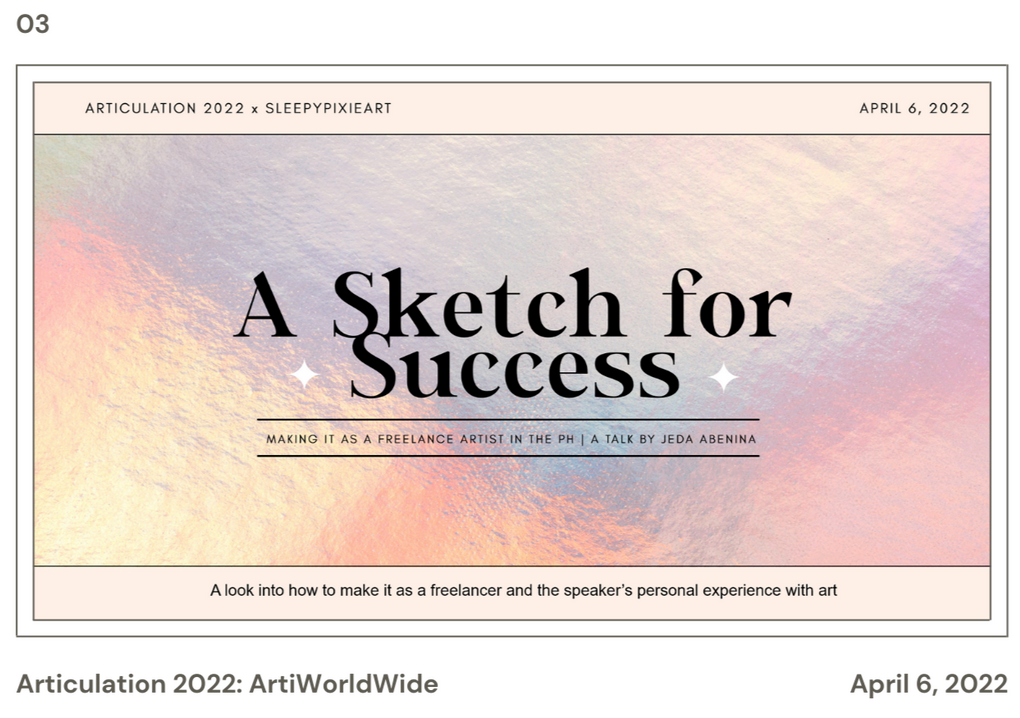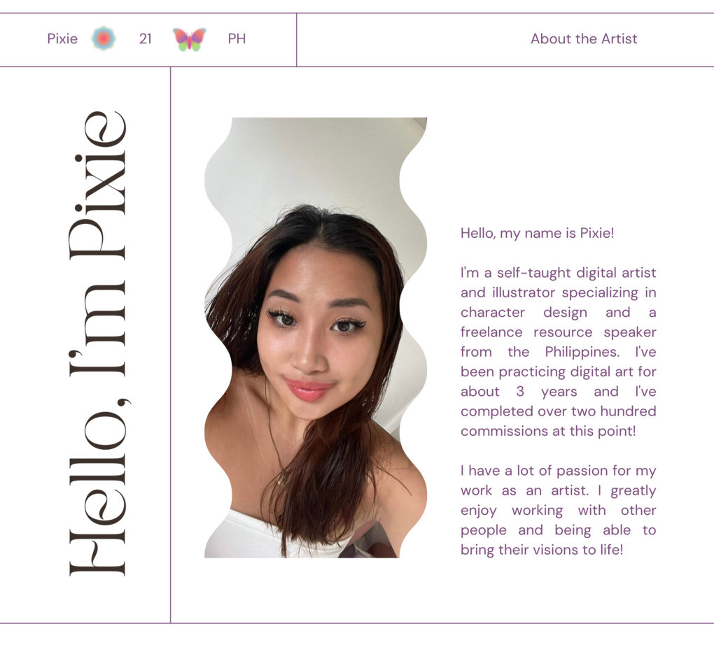 Pixie has been invited to do talks in several events as a hired resource speaker at some of the top universities in the Philippines. She has shared her expansive knowledge and personal experience in digital art, opening commissions, honing skills, and establishing a career in the field of arts.