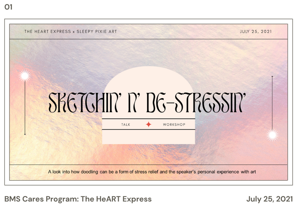 BMS Cares Program: The HeART Express was a webinar and workshop presented by the Business Management Society of De La Salle University. It was dedicated to art and how it can be used to ease stress by expressing yourself through doodling.