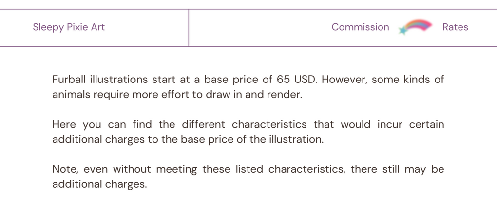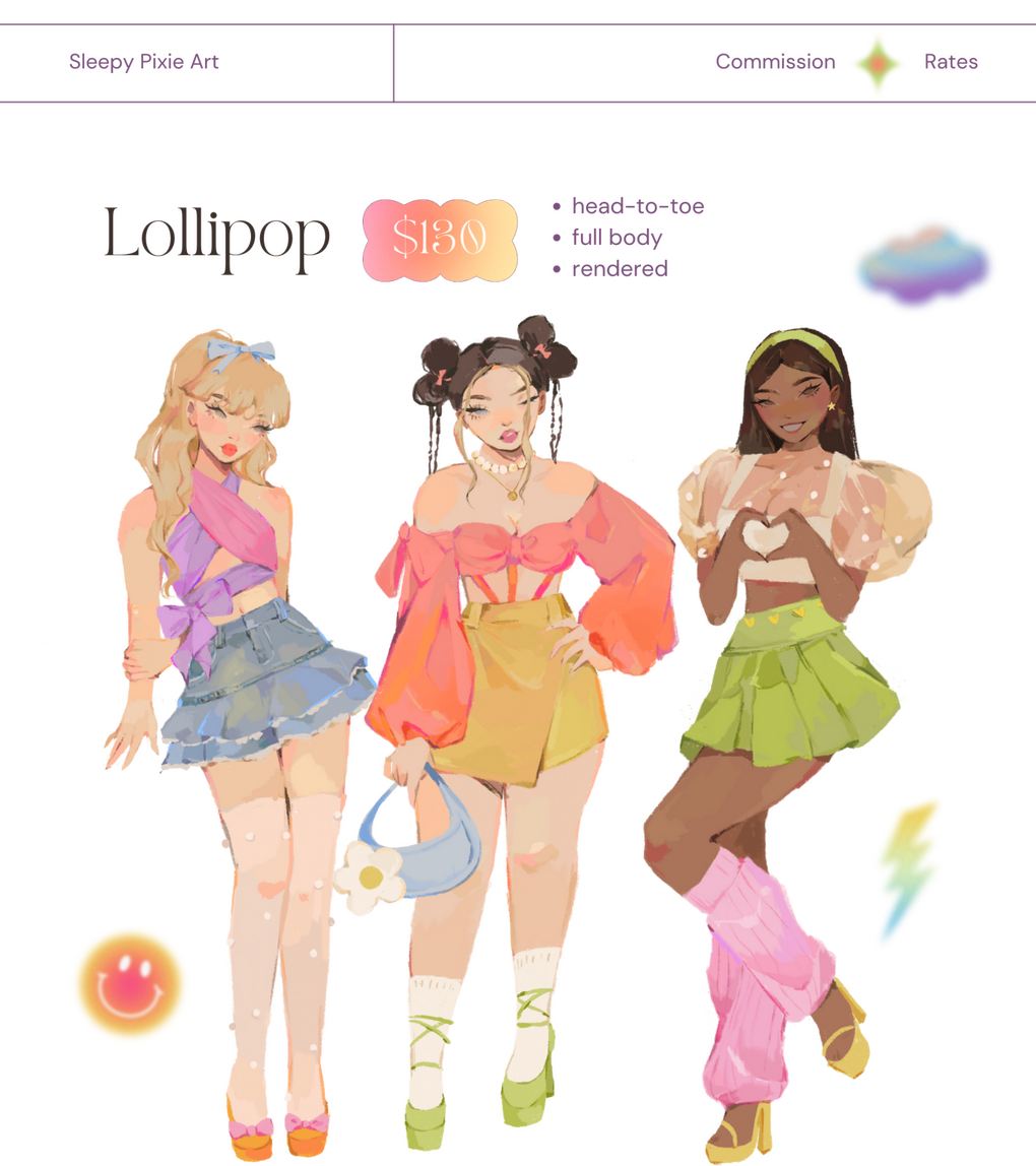 Seasonal/Special Commission Styles and/or Promos may not always be listed here. Whenever my commissions are open, I will have my commission sheets pinned on my Twitter profile. The Seasonal Specials, if any, will be listed and found there.