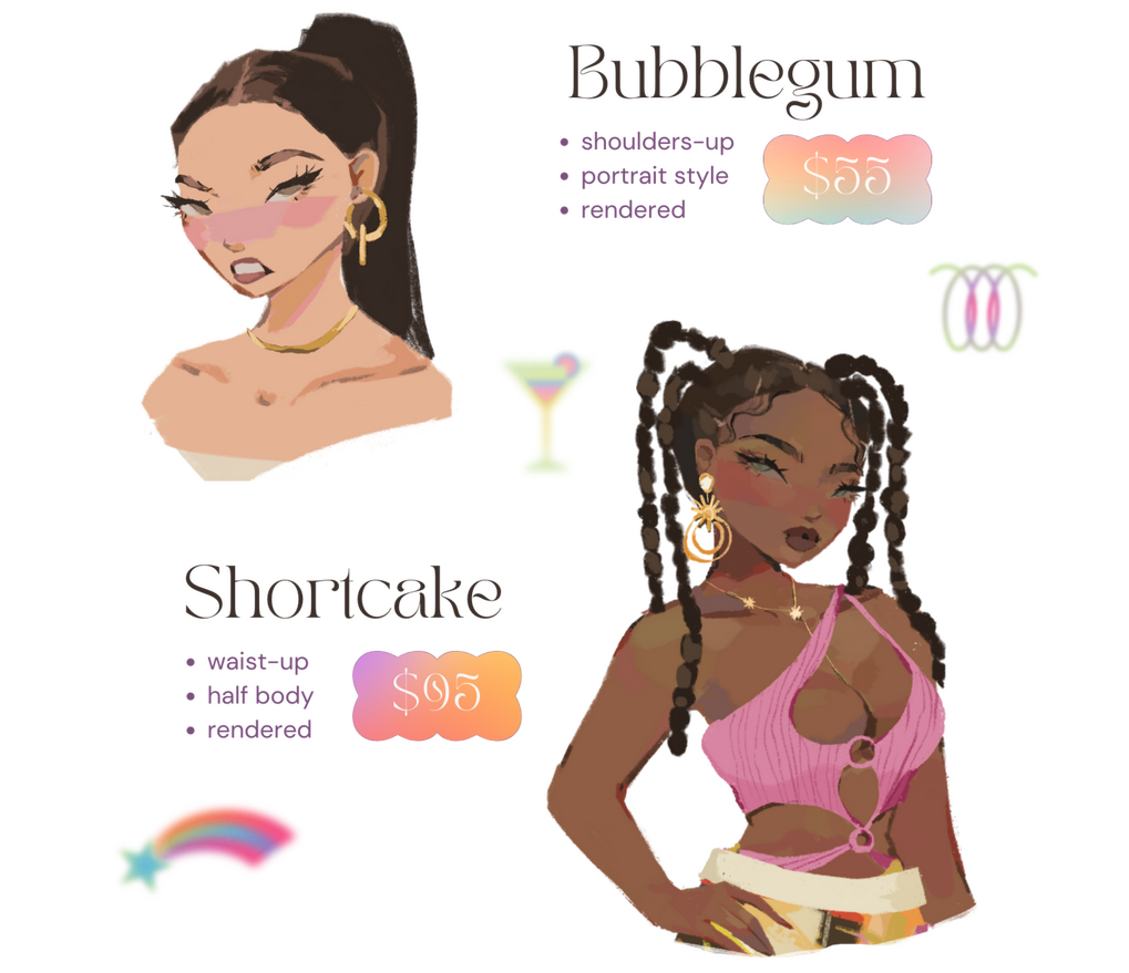 note that my art, especially in certain commission styles, is highly stylized and it may not always capture the likeness of a person.